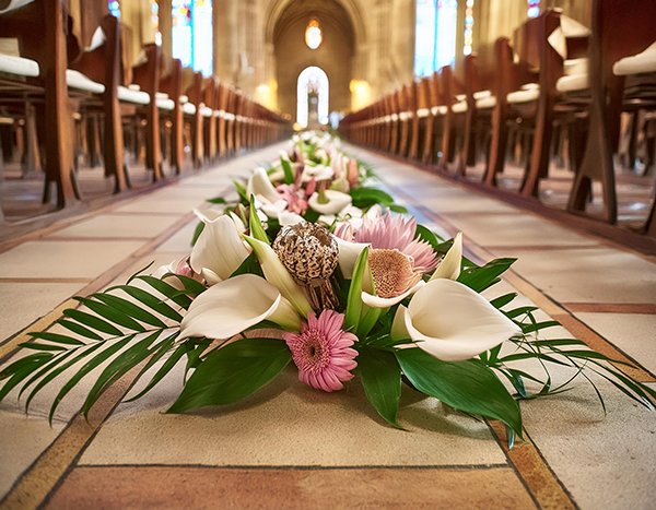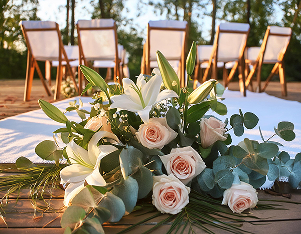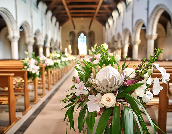 • Blumenschmuck für die Trauung (z.B. Bänke, Altar)