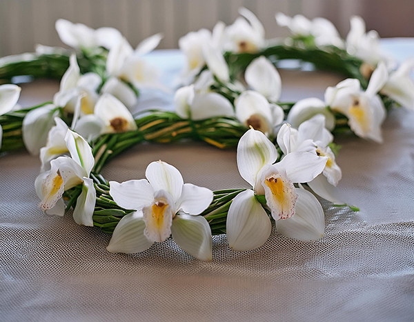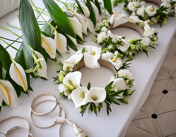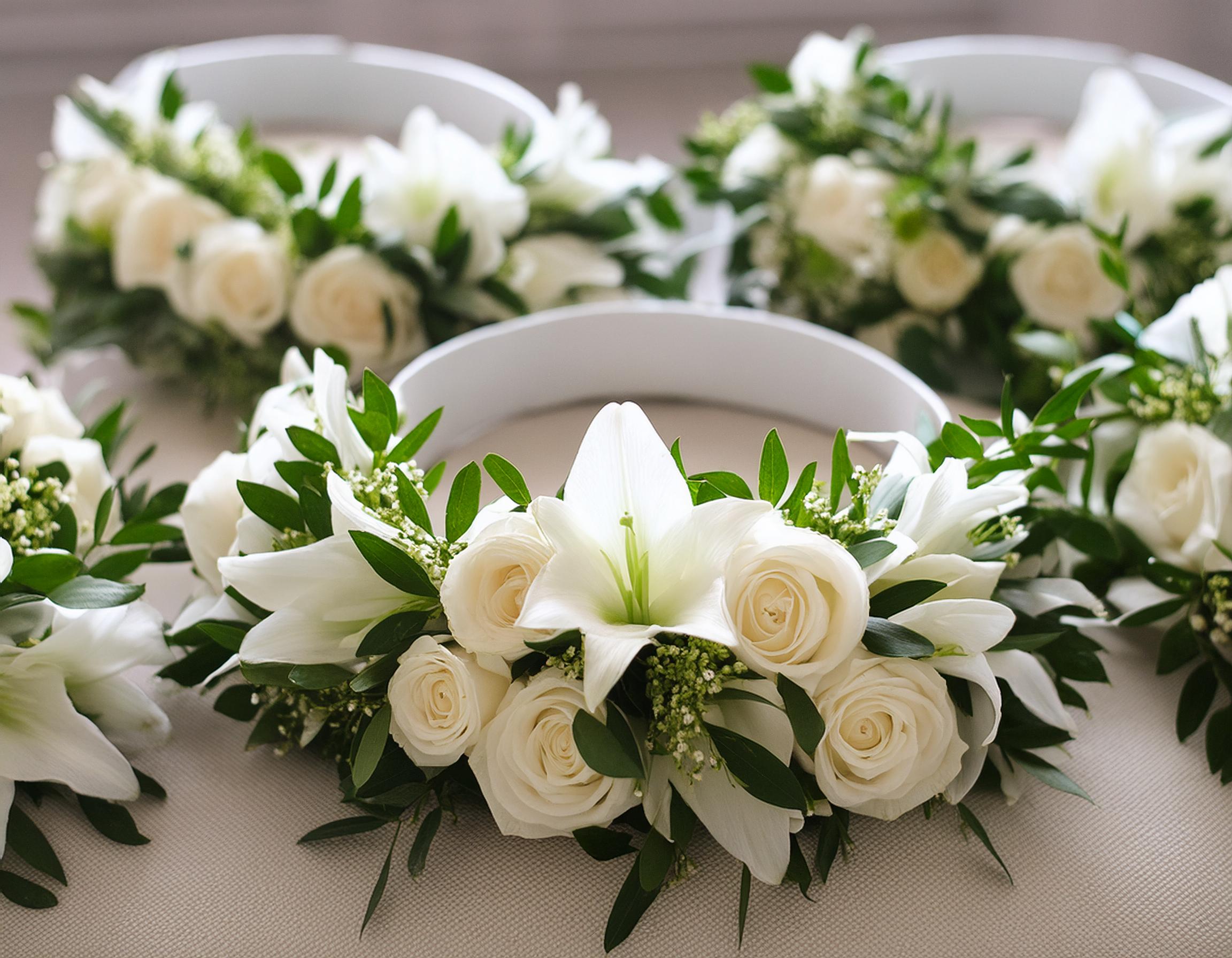 • Blumenkränze und Armbänder für die Brautjungfern
