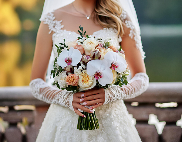 • Brautstrauß aus Orchideen, Rosen und Pfingstrosen