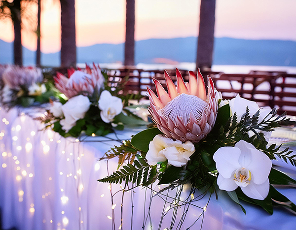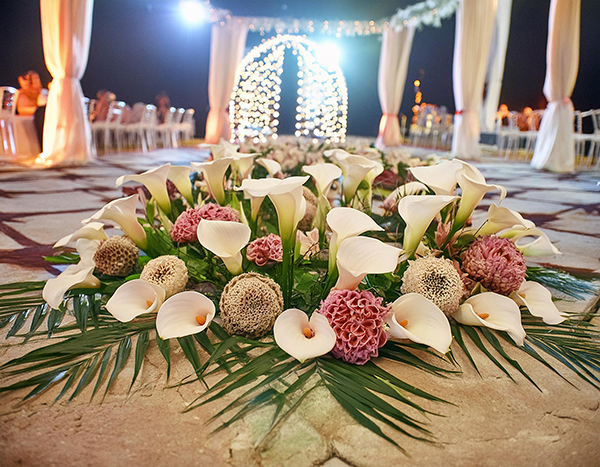 • Blumendekoration für den Empfangsbereich, die Tanzfläche und weitere Bereiche der Hochzeitslocation